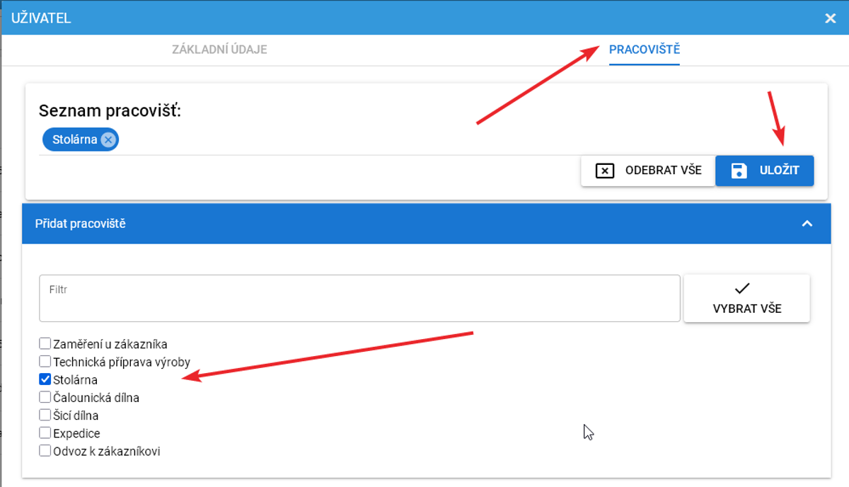 2. Přířazení pracoviště