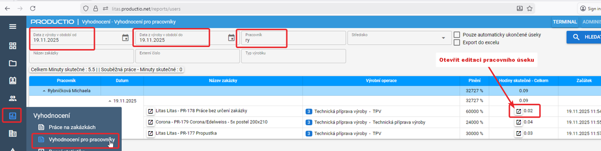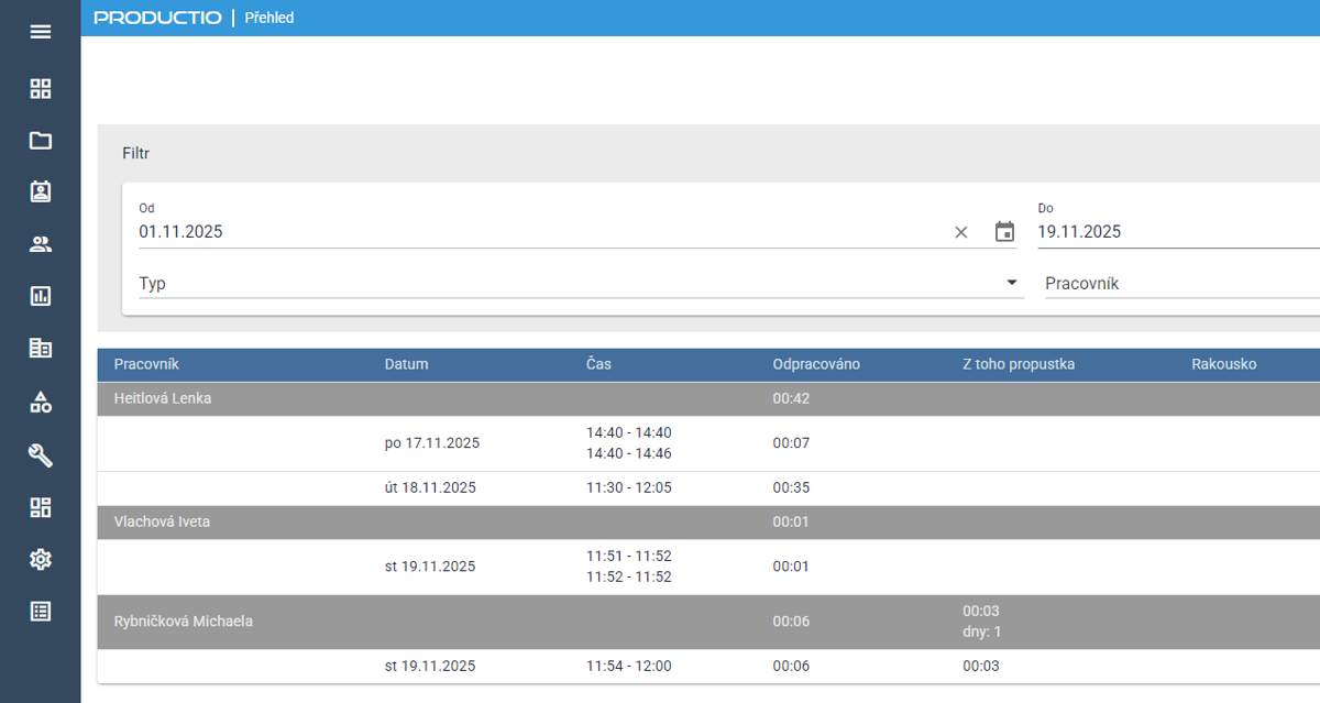 - Zadá se datum od - do a pracovník (stačí dvě písmena )