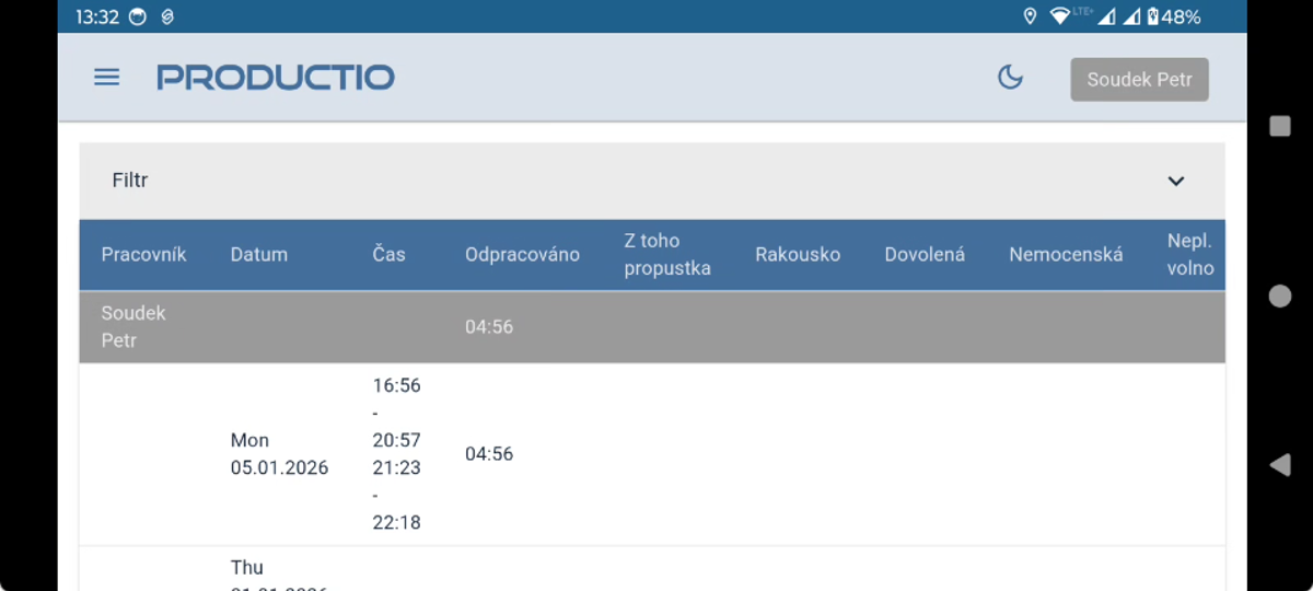 Dostupné funkce se řídí podle nastavení skupin pro uživatele.